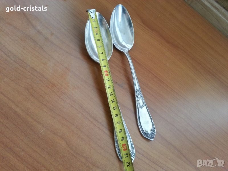 Руски прибори за сервиране лъжици мнц маркирани посребрени гравирани 2бр-48лв съветски ссср сервиз комплект сет лот ретро арт декор винтидж колекция стари антикварни предмети обзавеждане за дома и семейството подходящи за подарък за ценители и колекционери на