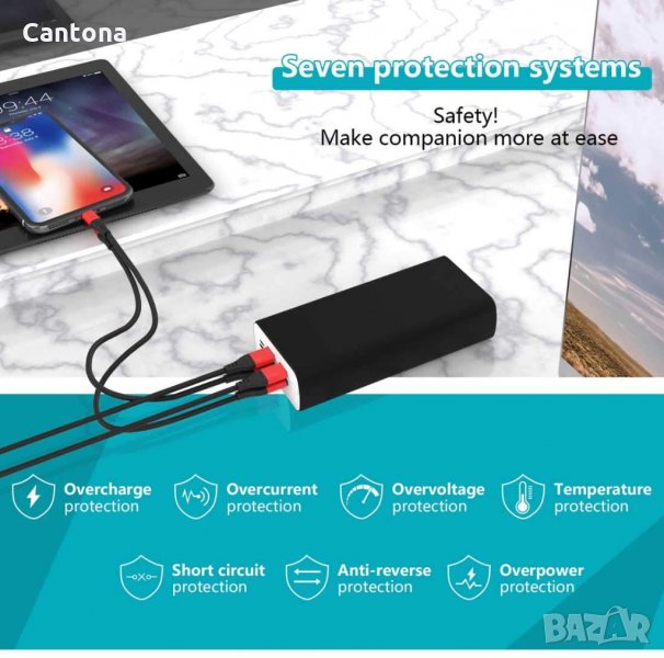 - 4. Външна батерия, подходяща за всички акумулаторни устройства като смартфони, таблети, камери, мини високоговорители, Bluetooth слушалки, преносими игрални плейъри и др.