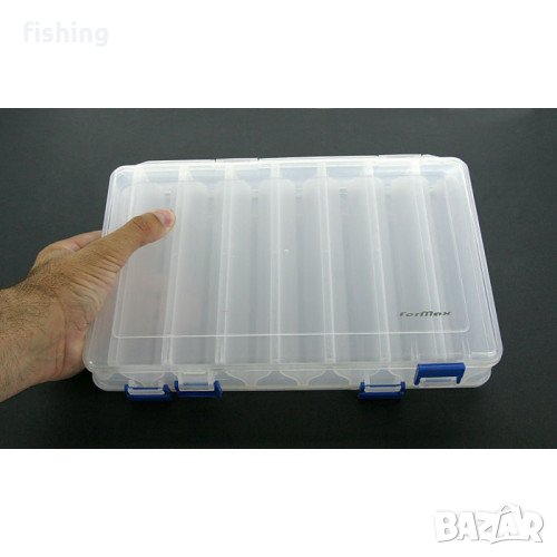 Удобна и лека кутия за изкуствени примамки, която осигурява оптимална подредба и достатъчно място за воблери, блесни и всякакъв тип риболовни аксесоари.