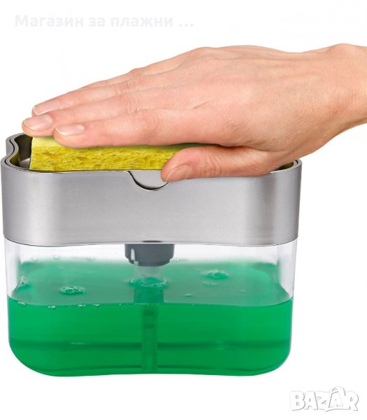 Контейнерът с почистващ препарат за гъба може и да не е революционно изобретение, но скоро ще се превърне в запазена марка за кухненското ви оборудване. Като цяло е много удобен и практичен – с помощта му вашата кухненска гъба е винаги напоена с препарат и готова за употреба. Времето за измиване на чиниите ви ще се съкрати значително. С лекота почиствате кухненския си плот, печката и други повърхности. Препаратът, който поставяте в контейнера – дозатор е изцяло ваше решение, в зависимост от това дали ще миете съдовете, или ще ги подготвяте за миялната машина.