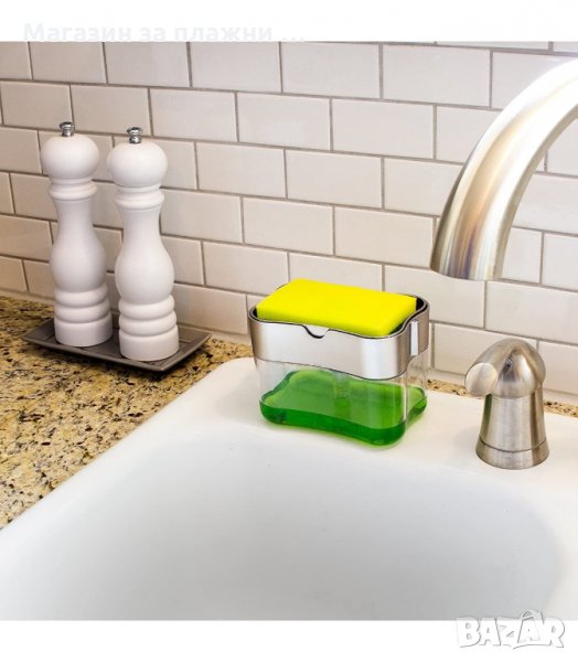 ПОСТАВКА ЗА КУХНЕНСКА ГЪБА И ДИСПЕНСЪР ЗА ТЕЧЕН ПРЕПАРАТ 2 В 1