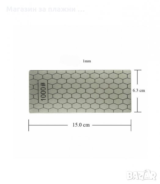 На повърхността на този камък е гравиран образец, наподобяващ пчелна пита. Диамантеното покритие е надеждно и износоустойчиво, необичаен дизайн: на повърхността на този камък е гравиран образец, наподобяващ пчелна пита. Диамантеното покритие е надеждно и износоустойчиво. На обратната страна има лепкава повърхност, която предотвратява плъзгането на лентата. Използвайте диамант като абразивен материал, по-ефективен от нормалния бруск и по-малък риск от увреждане на ръбовете.