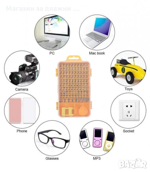 Комплект от 110 части отверки и аксесоари за ремонт на мобилни телефони и таблети