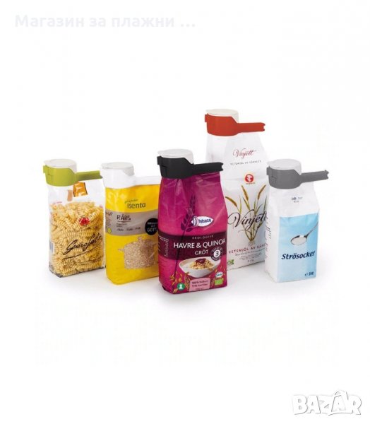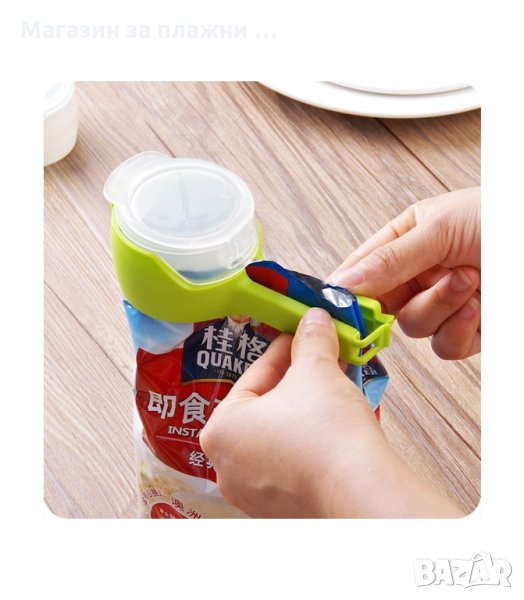 Тази щипка запечатва здраво вече отворените пликове със сол, захар, ориз и други сухи храни, като не е нуно да я откопчавате всеки път, когато искате да отсипете от плика. Просто отворете капачката и отсипете нужното количество, без да разсипвате и разпилявате продуките. По този начин качеството на храната не се разваля.