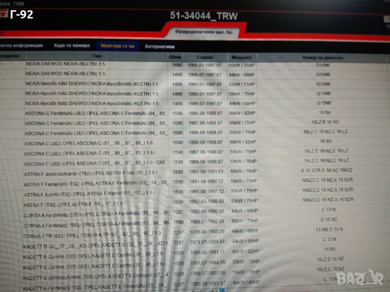 1.6 (NZ / LZ / SV) OHC OPEL ASCONA C,