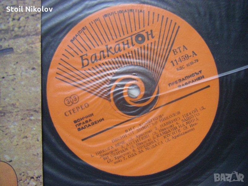 Грамофонна плоча - ВТА 11459 - ВИГ Колегиум изпълнява песни от Димитър Николов