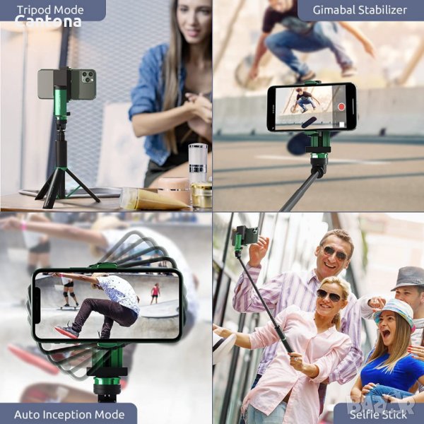Селфи стик-трипод със стабилизатор, Bluetooth remote, съвместим с iPhone, Android, USB зареждане