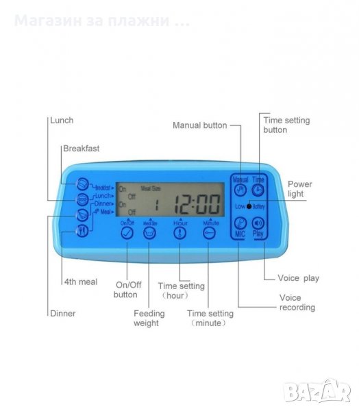 Общо 4 хранения могат да се настроят по различно време и с различно количество за деня!