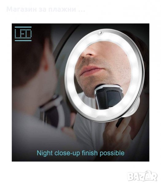 Огледало за грим с LED светлина и увеличение 10Х - захващане чрез вакуум