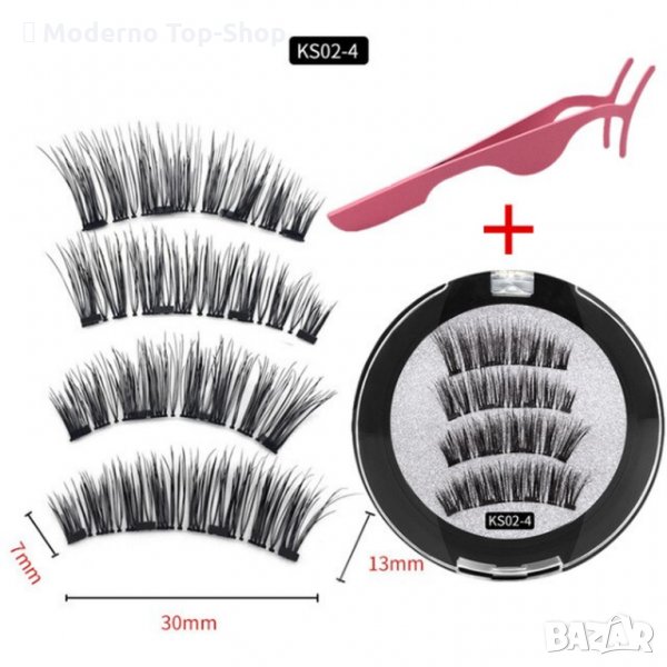 Комплектът включва 4 мигли - по 2 за всяко око, към всяка от които са прикрепени 4 магнита