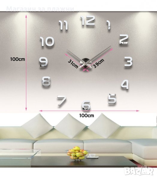 Много красиви модерни 3Д стенни часовници с диаметър от 60 до 100 см. Един по-различен стенен часовник придаващ стил на вашия дом. Часовникът е релефен и с огледално покритие, и със своята големина несъмнено грабва погледа, когато влезете в стаята.