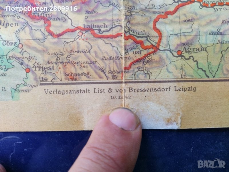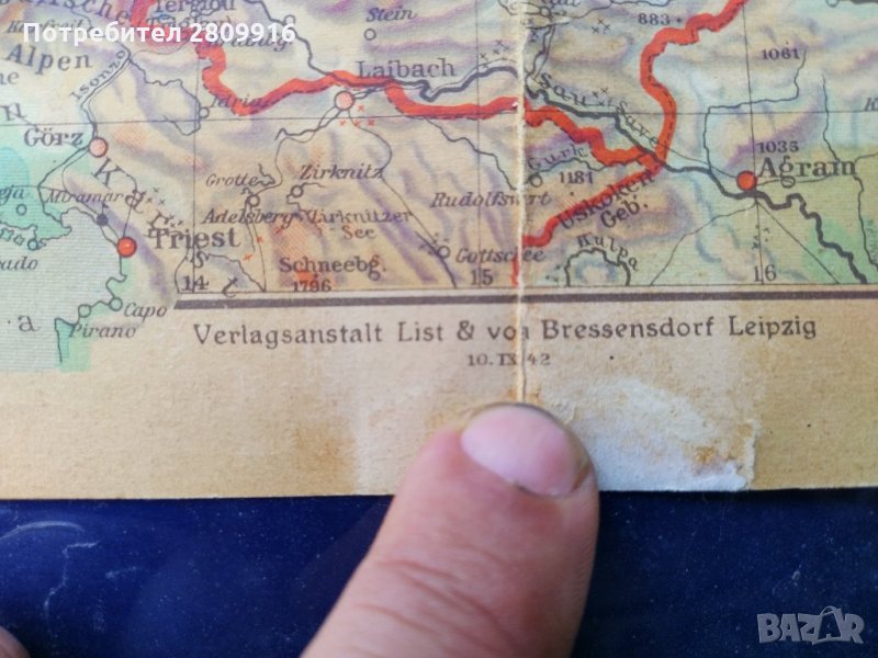 Автентична географска карта на нацистка Германия от 1942 → Обява 34204325