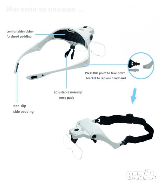 Професионална лупа за глава с лед осветление за четене, шиене, бродиране