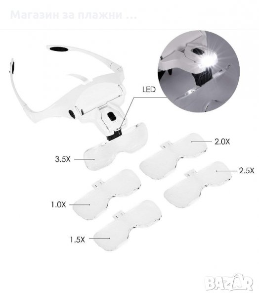 Очила с пет сменяеми лупи – 1.0х, 1.5х, 2.0х, 2.5х, 3.5х.