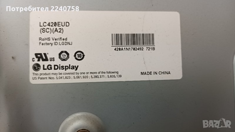 Digital Board 715G4318-T01-000-005B от телевизор с дефектен екран Toshiba 42SL738G.Панел LC420EUD(SC)(A2)