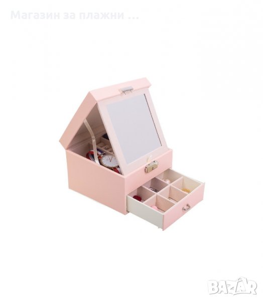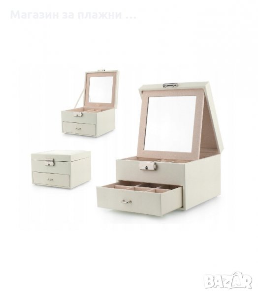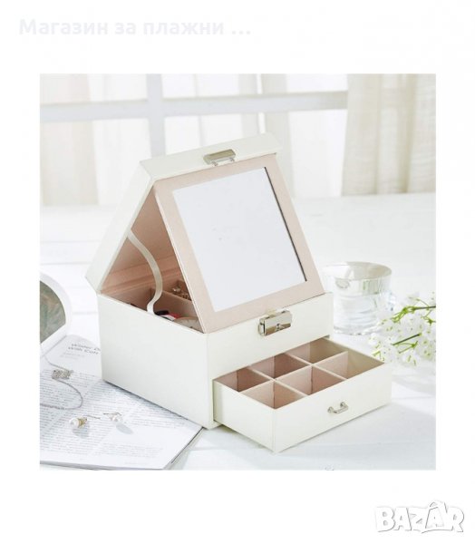 Луксозна кутия за бижута с голямо подвижно огледало и чекмедже за дребни аксесоари