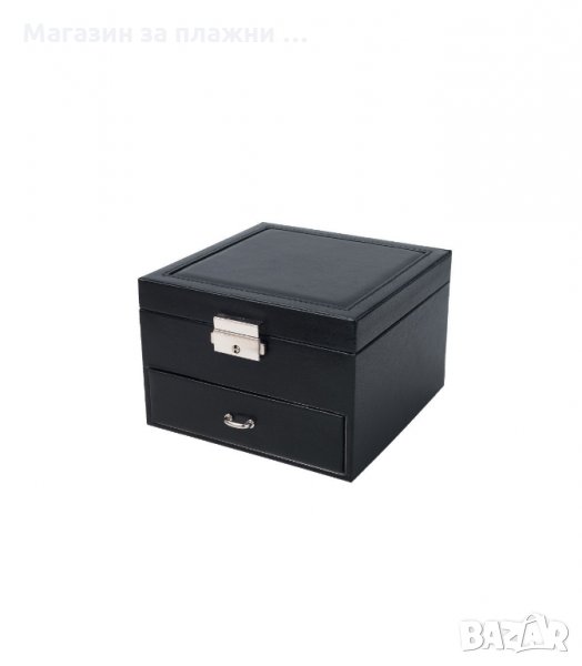 Кутията е облицована в красива синтетична кожа, а вътрешността е с велурено покритие. Разделителите от чекмеджето може да се променят или да се махнат изцяло, така получавате повече място за своите нужди. Металната закопчалка е едновременно елегантна и стабилна.