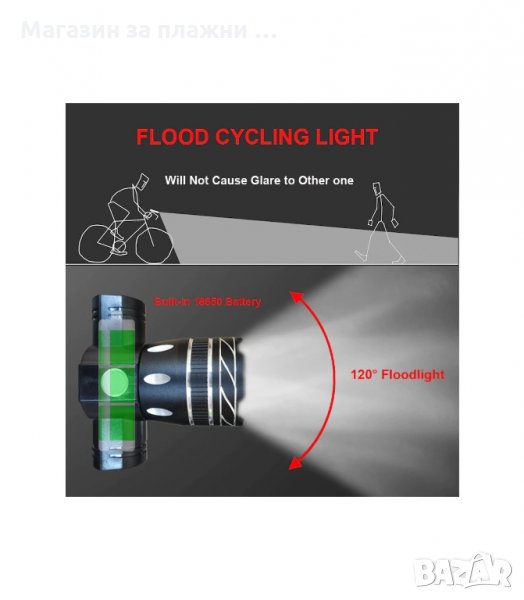 LED фар за колело с мощност 1600 лумена и функция ZOOM. Захващане за велосипеда чрез регулируема силиконова каишка.Захранва се чрез вградена или сменяема батерия, която се зарежда от USB. Зареждане от USB или от 220V посредствоm адаптер (адаптера се закупува отделно на цена +3.00лв.) Капацитет на батерията: 3000mAh 3.7v; Предната светлина за колело е с 3 режима на работа: Силно, слабо и мигащо. Водоустойчивост клас IP65.