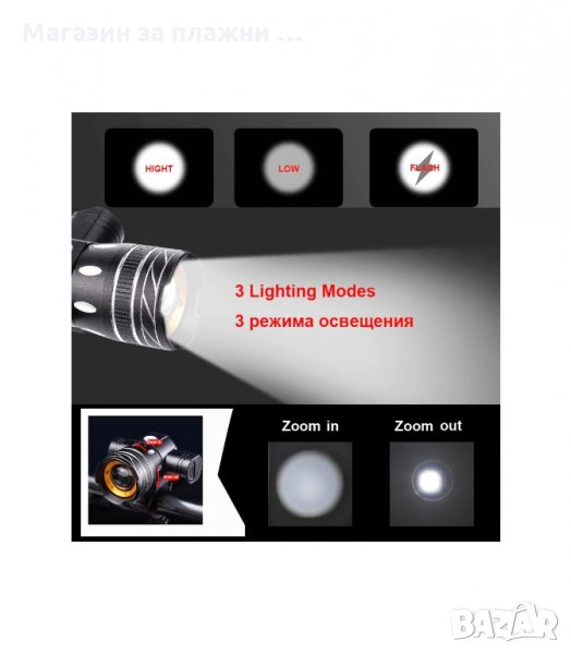 Фар за велосипед със ZOOM i три работни режима