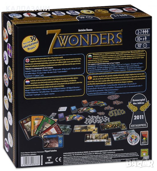 Seven Wonders (“7-те Чудеса”) е стратегическа игра за от 3 до 7 играча, позволяваща и специален режим на игра за 2-ма играчи. Поведете един от седемте велики града на Древния свят. Възползвайте се от природните дадености на земите ви, развийте търговски взаимоотношения със съседите си, укрепете военната си мощ, овладейте предимствата на прогреса и технологиите. Оставете своята следа в историята като построите архитектурно чудо, което ще пребъде във вековете.