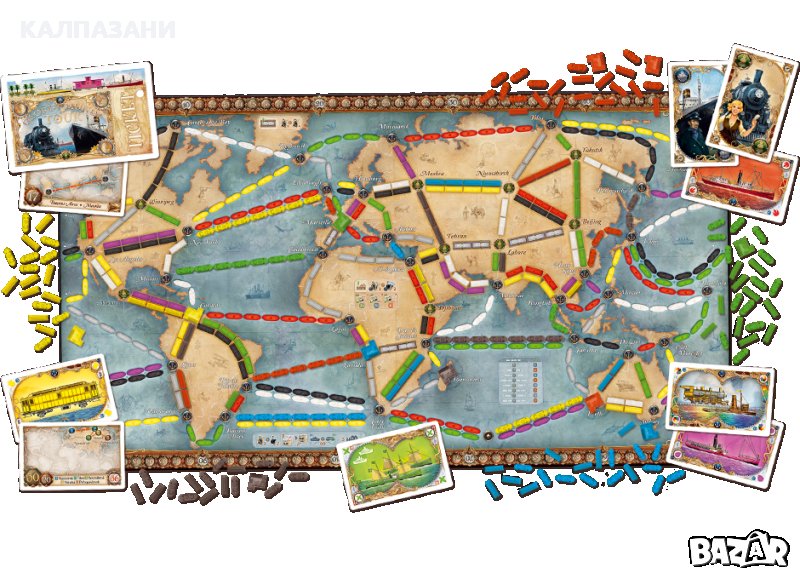 Светът се променя бързо. Навсякъде, железопътните релси свързват страни и континенти, а пътуванията, които преди отнемаха цели седмици, сега могат да бъдат завършени в рамките на няколко дни. Моретата вече не се явяват като пречки: огромни кораби возят хиледи пътешественици през океаните. От Лос Анжелес до Сидни, през Мурманск до Дар ес-Салаам, настолна игра Ticket to Ride: Rails & Sails ще те отведе на железопътно пътешествие през целия глобус.
