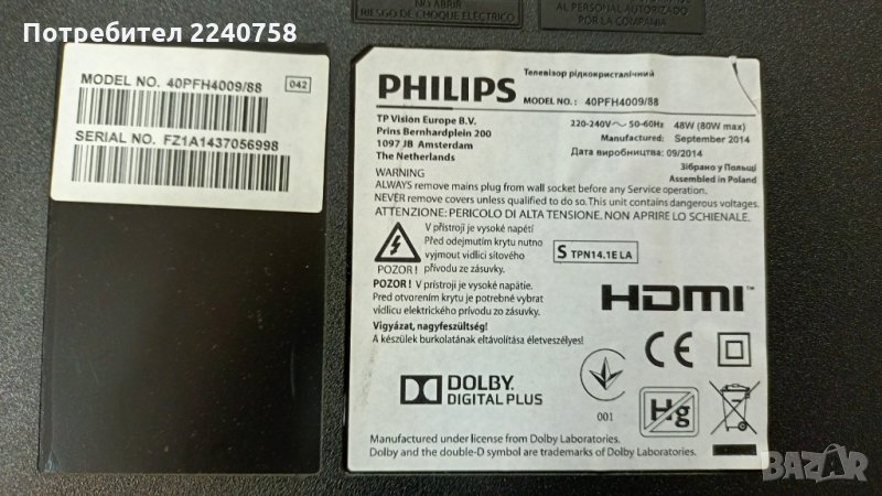 Подсветка GJ-DLEDII P5-400-D409-V7 от телевизор със счупен екран Philips 40PFH4009/88 TPT400LA-J6PE1 → Обява 34219032
