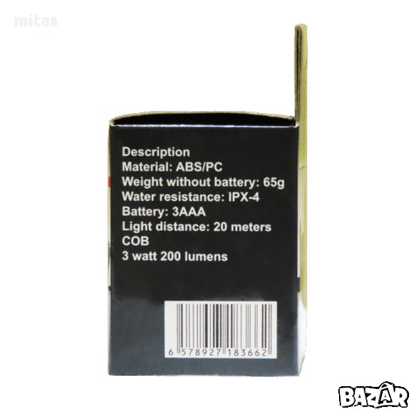Лампата се захранва от 3 батерии AAA (не са включени в комплекта). За най