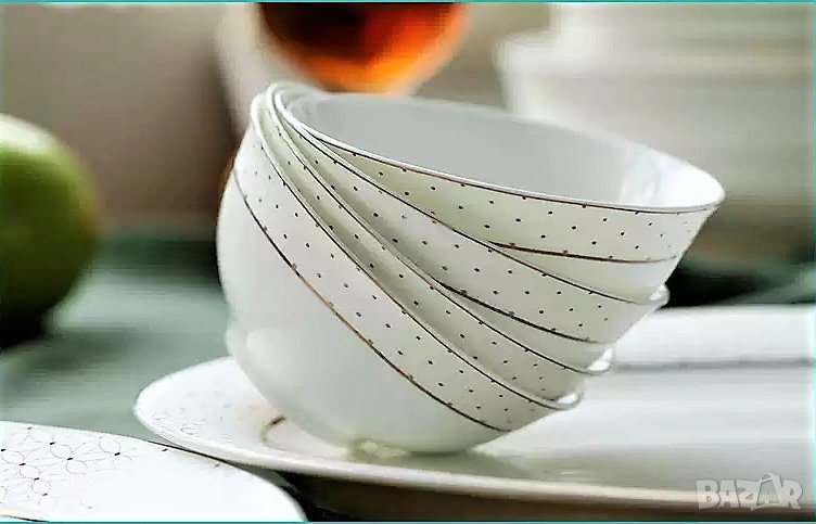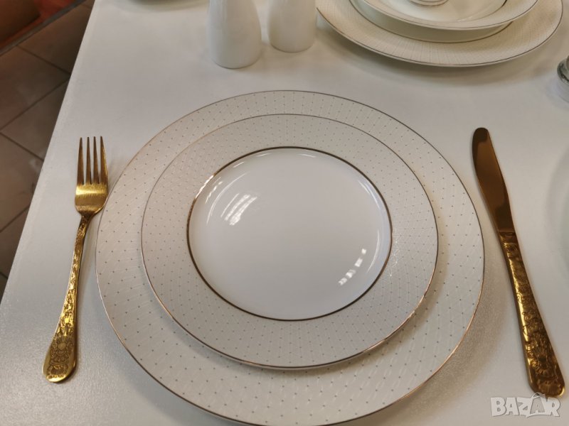 💝Луксозен сервиз за хранене за 6 човека от фин костен порцелан с дискретен, златен декор и два златни канта.💝