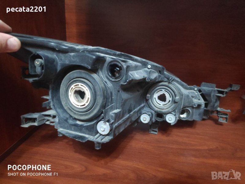 Продавам - ляв и десен фар за Мазда 6 (Mazda 6) 2008-2013 г. И двата фара са много мръсни отвътре, корпусите и на двата са здрави (всички крачетата са си на мястото), стъклата са здрави, фаровете НЕ са ксенон. Левия фар има счупен държач отвътре на лупата, десния е напълно здрав. Фаровете са за рециклиране. Цена на брой - 80 лв.