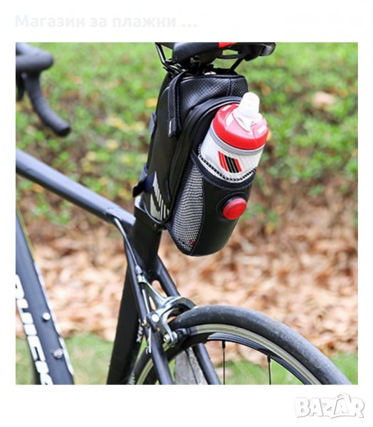 Практична велочанта за под седалката с място за бутилка и заден стоп