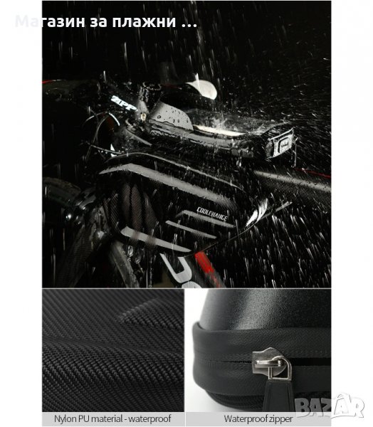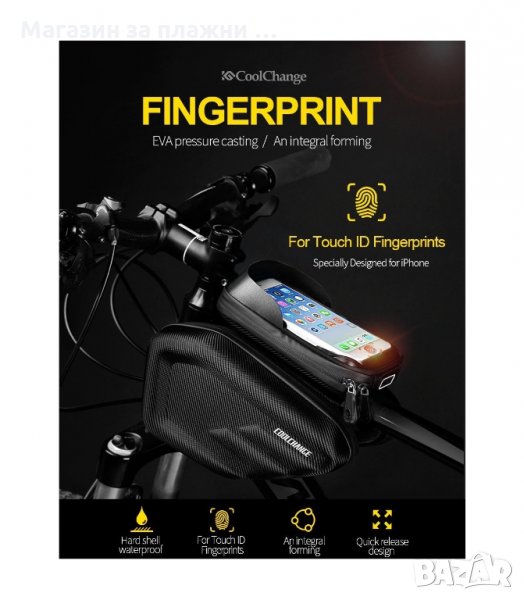 Чантата за колело е с твърд водоустойчив корпус със здраво захващане за велосипедната рамка. TOUCH-SENSITIVE повърхност на джоба за телефони - можете да ползва пръстова идентификация за Iphone 6/6 Plus ; Iphone 7/7 Plus ; Iphone8/8 Plus и др.;