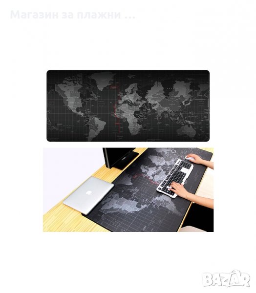 Голяма подложка за бюро – Карта на света е специално предложение за почитателите на красивите, уникалните и практичните аксесоари. Моделът представлява голяма подложка, която може да се постави на работното бюро. Върху нея се слагат клавиатурата и мишката, така че да не се ограничавате в пространството за движение. Бъдете свободни да развихрите фантазиите си и да изразите по най-добрия начин своите виждания. Подложката е с изключително стилна и интересна визия – карта на света в черно и сиво. Излъчва лукс и качество с всеки свой детайл.