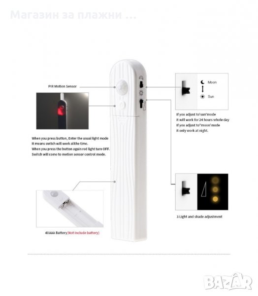 Захранване – 4 х ААА (купуват се допълнително);