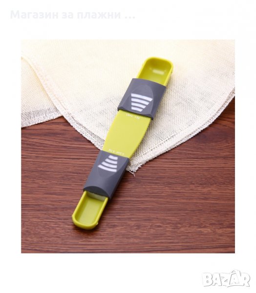 Измервателна лъжичка за грамове и милилитри тип регулируем дозатор. С тази двойна лъжичка можете да измервате прецизно дозите за подправки и течности за Вашите ястия и десерти.