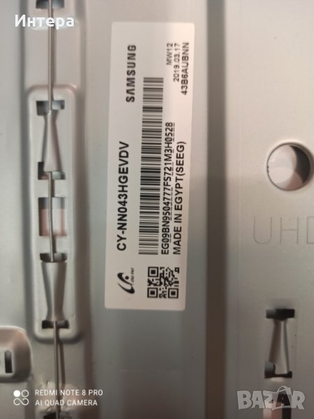 Samsung UE43NU7092U със счупен дисплей CY-NN043HGEVDV, гарантирано работещ.