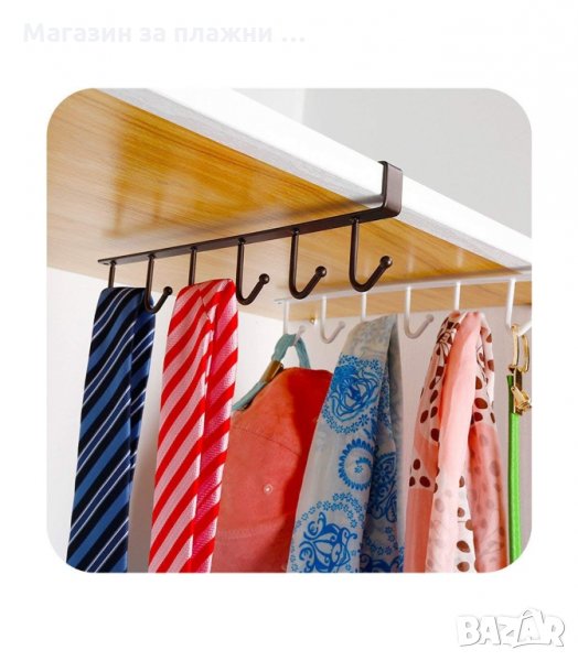 Универсален органайзер за закачане на чаши и прибори с 6 куки - 1 брой