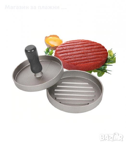 Бургер пресата е полезен уред, използван за оформянето на кюфтетата за бургери. Просто постави сместа за кюфтето в кръглата форма и натисни буталото отгоре. Ръчната преса за бургери плътно притиска кюфтето във формата, за да изкара балончетата от въздух в каймата и да гарантира равномерното изпичане на кюфтето в последствие.