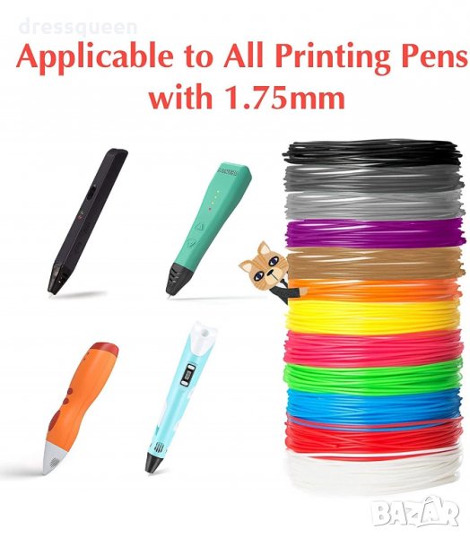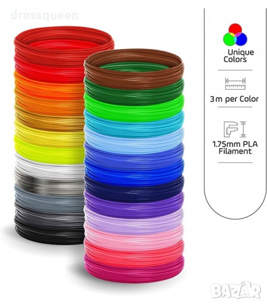 Комплектът съдържа пластмасови цветни пълнители в 12 цвята, всеки по 3 метра (общо 36 метра) или в комплект 18 цвята, всеки по 3 метра (общо 54 метра). Подходящи за 3D Писалка Вид на пълнителите: PLA