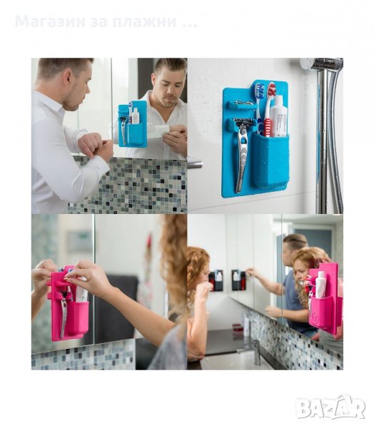 Силиконова поставка за четки за зъби, самобръсначки и паста - самозалепваща