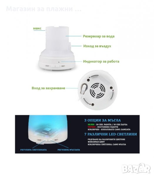 С 3 режима на работа: режим постоянно изпускане на мъгла ; режим 30 сек. мъгла и 30 сек. пауза ; режим изключено;