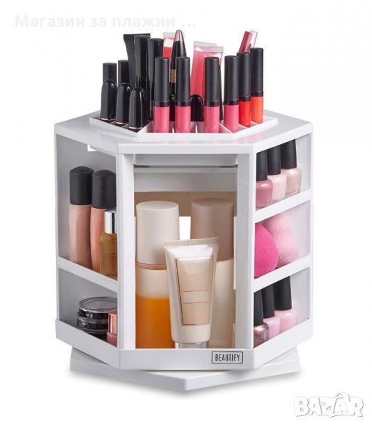 Въртящия се на 360 градуса органайзер е чудесно допълнение към Вашата домашна гримьорна като едновременно прилежно подрежда използваните от Вас продукти и спестява място.
