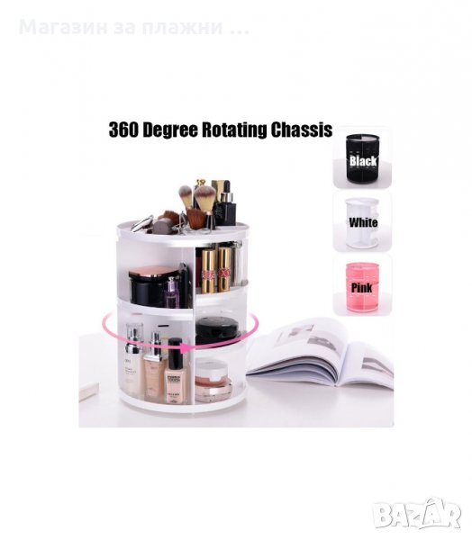 Много удобно решение за всяка дама - спретнат въртящ се органайзер за съхранение и сортиране на гримове, продукти за красота и много други аксесоари! С този стелаж ще организирате моментално цялата си козметика и с едно завъртане лесно ще откриете точно това, което търсите.
