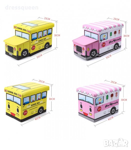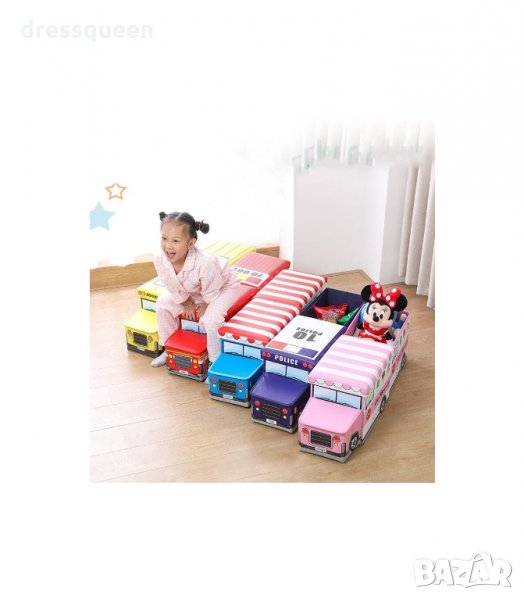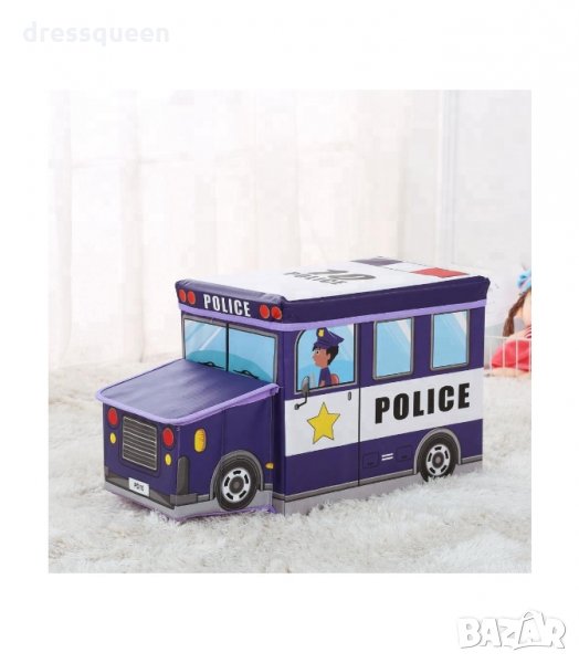 Кош за играчки - сгъваема кутия табуретка с форма на полицейска кола, пожарна, автобус и камион за сладолед