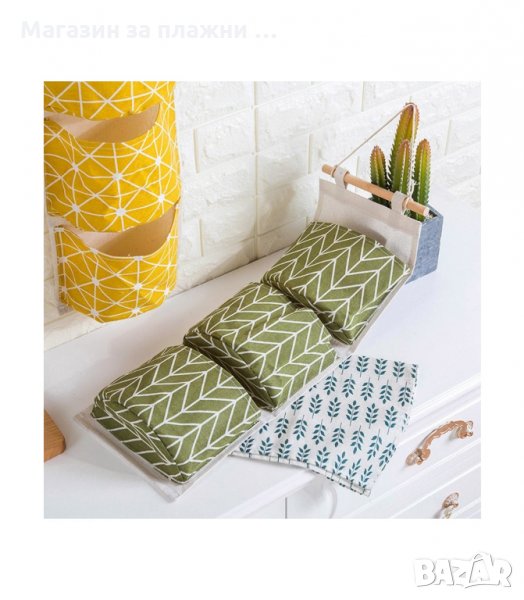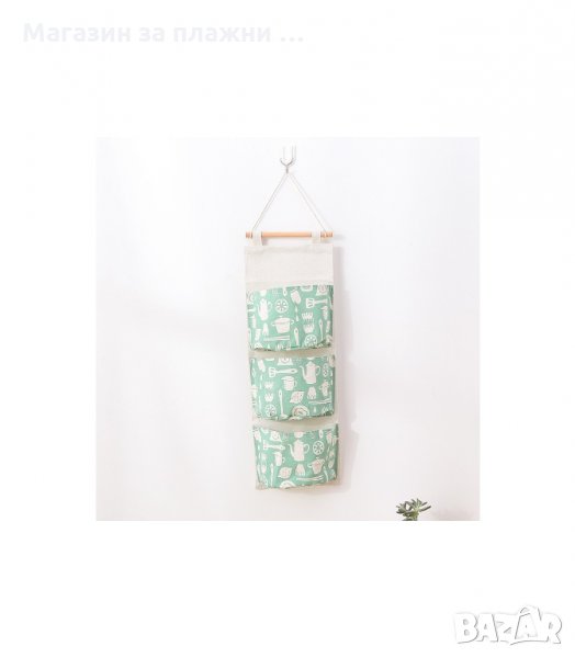 Изключително практичен и подходящ за стена. Може да се комбинира чудесно с постелки, покривки за диван, декоративни възглавници, възглавници за столове и други. Текстилен стенен органайзер, разполага с 3 отделения с еднаква големина. Лесно се поставя. Материята на изработка е текстил и дървена летвичка.