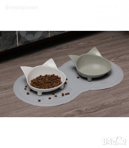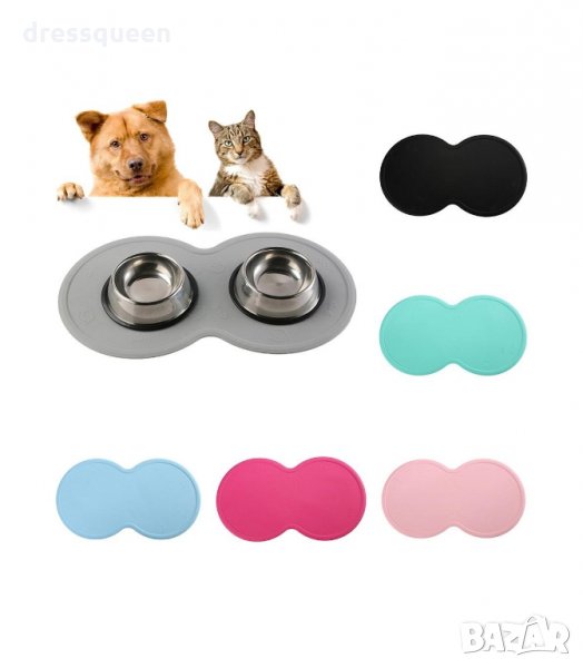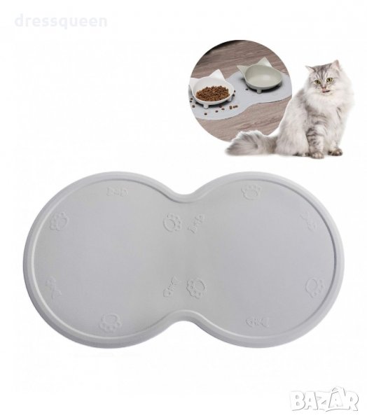 Повдигнатият ръб предотвратява изтичането на вода вън от подложката и задържа купата на мястото й. Отпред подложката е заоблена, за да може животното без усилие да достигне до купичката.