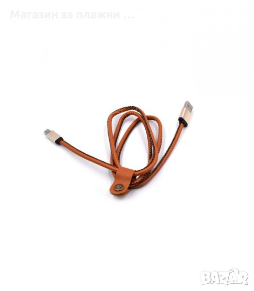 Луксозен кабел за бързо зареждане на мобилни устройства с кожено покритие и декоративен шев.