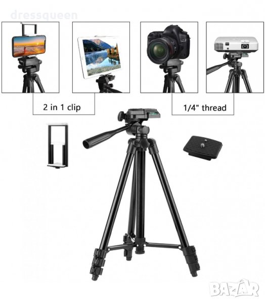 ***Посочената цена е САМО за трипода. Другите аксесоари показани на някои от снимките, като държач за телефон, държач за GoPro, блутут дистанционно и калъф за трипода се закупуват отделно, като допълнителни аксесоари.