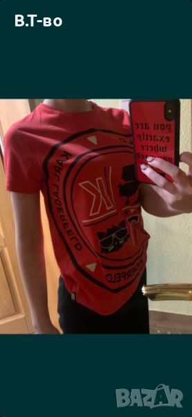 Оригинална жестока тениска на бранда Karl lagerfeld. Цвят корал, в отлично състояние, без забележки! Става и за xs-s размер. Разгледайте и др.ми предложения:)