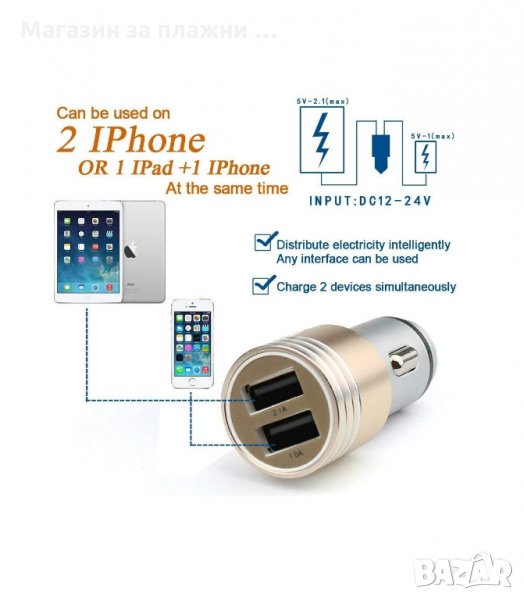 Зарядното за кола е предназначено за бързо зареждане на Вашето мобилно устройство.