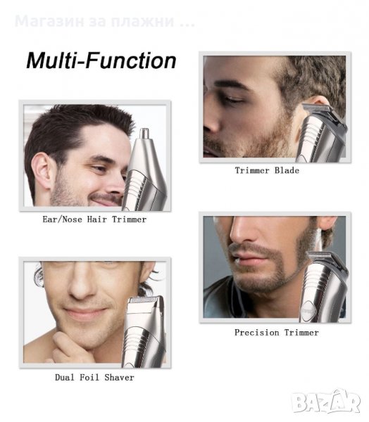 Мултифункционален уред за цялостна хигиена на окосмяването по тялото. Четирите лесно сменяеми глави, прецизно отстраняват поникналите косъмчета - в носа, ушите и други деликатни места. Липсата на постоянен кабел и ниското тегло, увеличават удобството при използване. Машинката е лесна за почистване и измиване, след като се свали използваната глава.